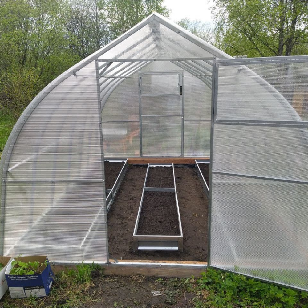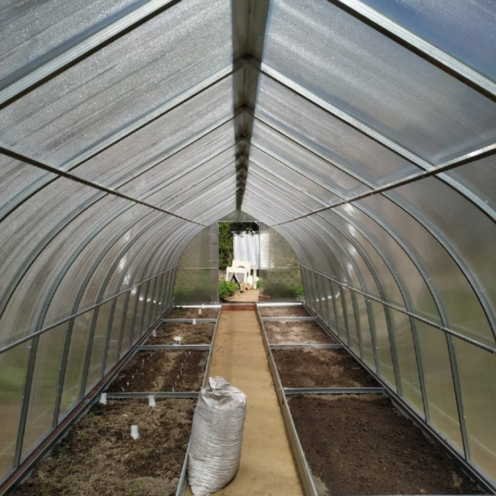 Большая теплица Кпля 4м подходит хозяйствам, которые профессионально выращивают рассаду, цветы и сельскохозяйственные культуры на продажу.