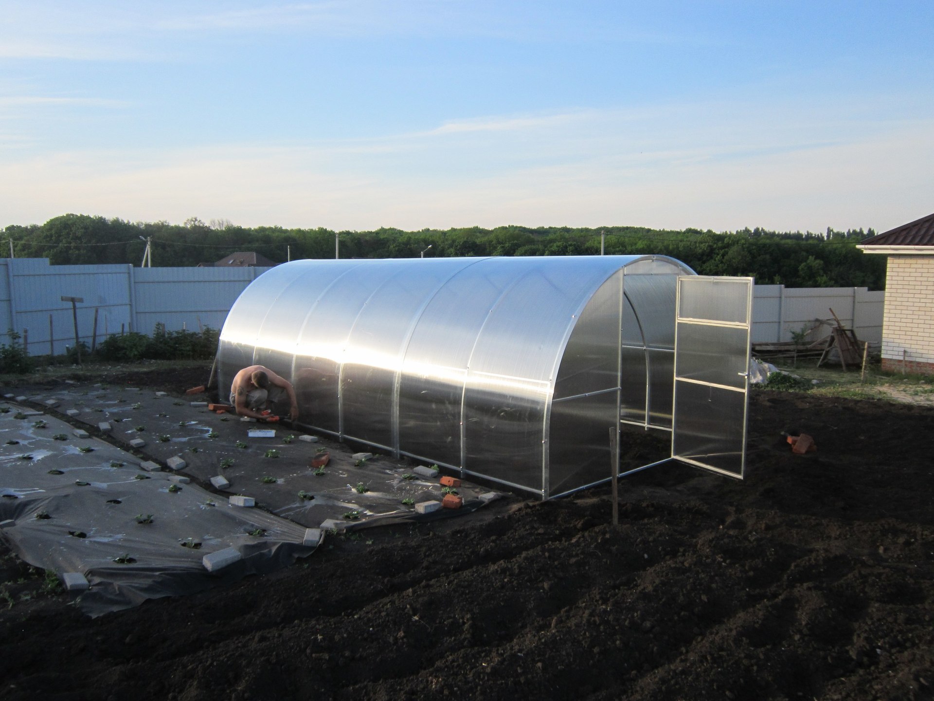 Выбирала себе парник на дачу прошлой осенью. Посоветовали оригинальную Агросферу 40х20. Что бы чего не запороть решила заказать с установкой. Приехали молодые парни (даже в одинаковой зеленой форме), сделали всё красиво, как я хотела, даже придраться не к чему было. Прошёл год, теплица стоит как "вкопанная", урожай отличный. Спасибо Вам!