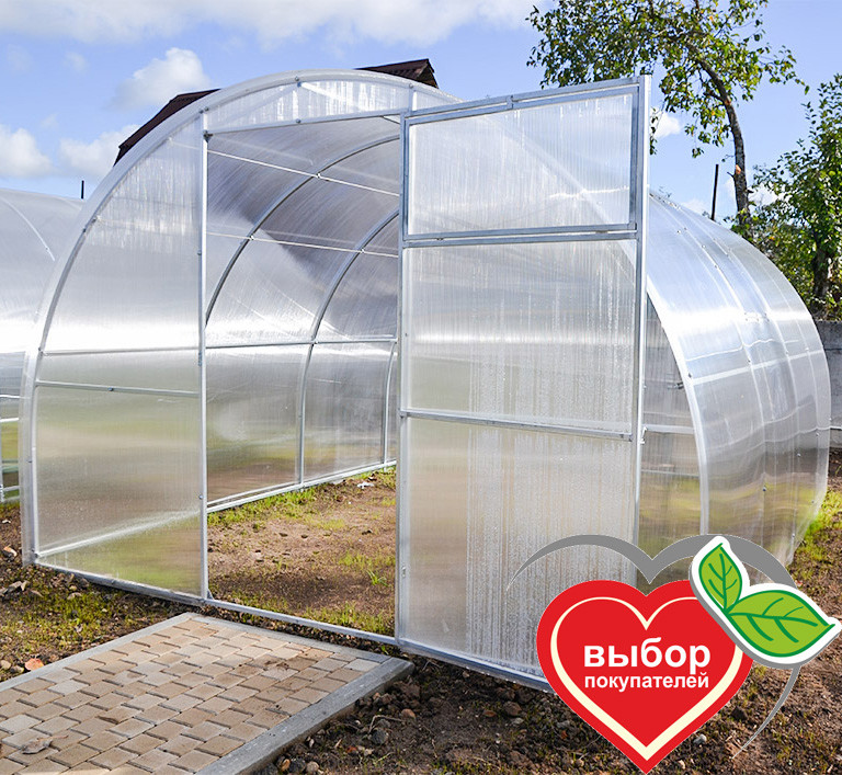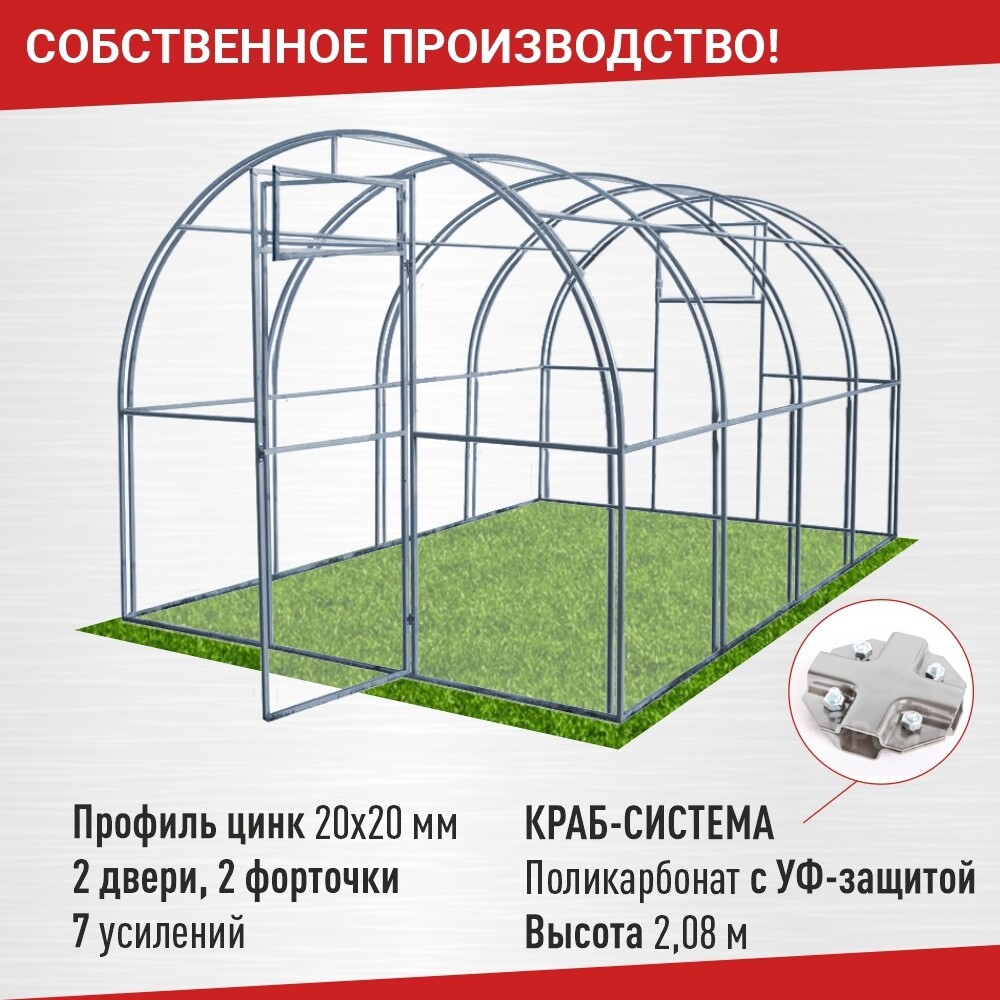 Теплица комплектуется качественным и долговечным сотовым поликарбонатом. Полная совместимость с системами капельного полива.