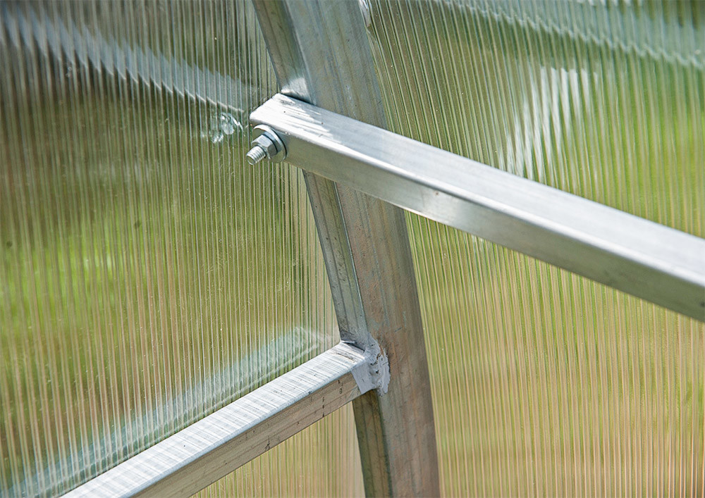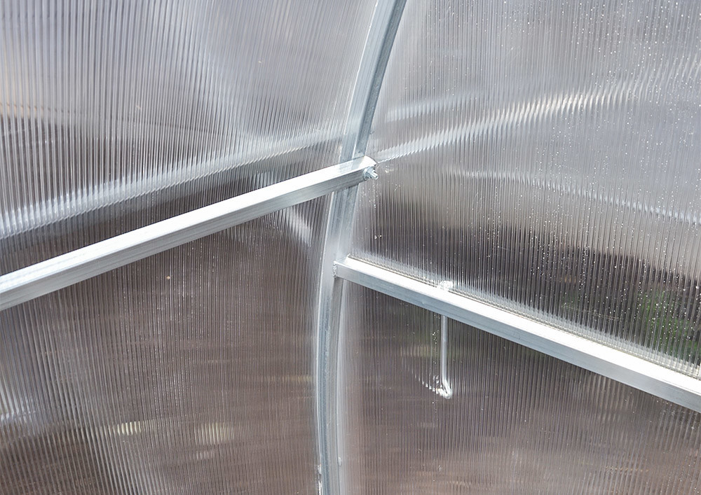 Цинковое покрытие надёжно защищает каркас теплицы от коррозии. Стальная труба оцинкована полностью с наружной и с внутренней стороны.